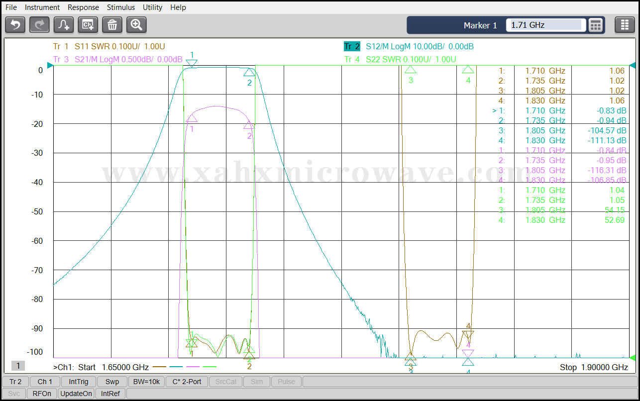 | ● | Pass Band Frequency | 1710 ~ 1735MHz | 1805 ~ 1830MHz |