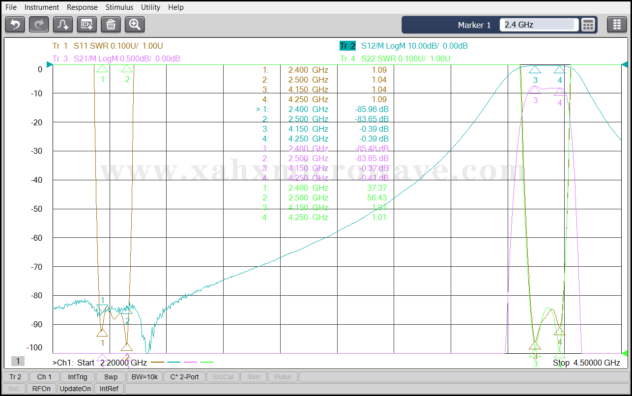 | ● | Pass Band Frequency | 2400 ~ 2500MHz | 4150 ~ 4250MHz |