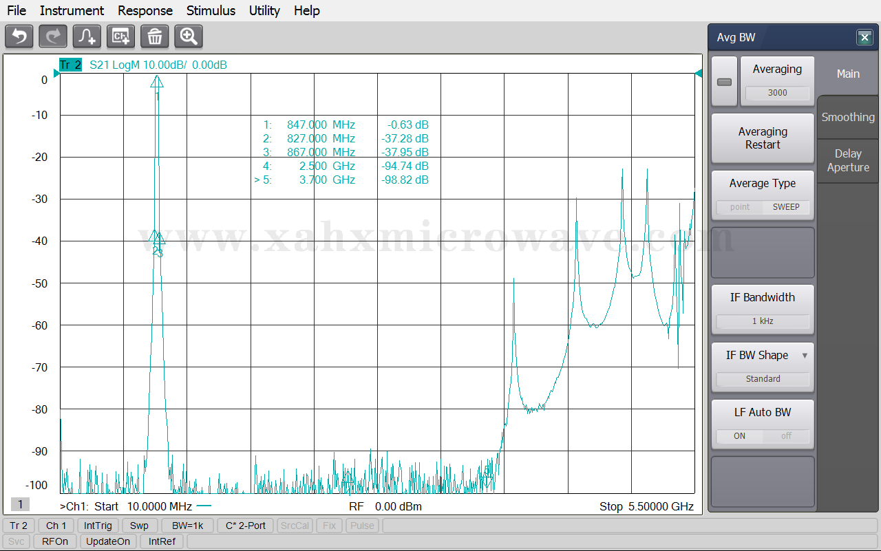 | ● | Stop Band Rejection | ≥30dB @ DC ~ 827MHz | ≥30dB @ 867 ~ 2500MHz |
