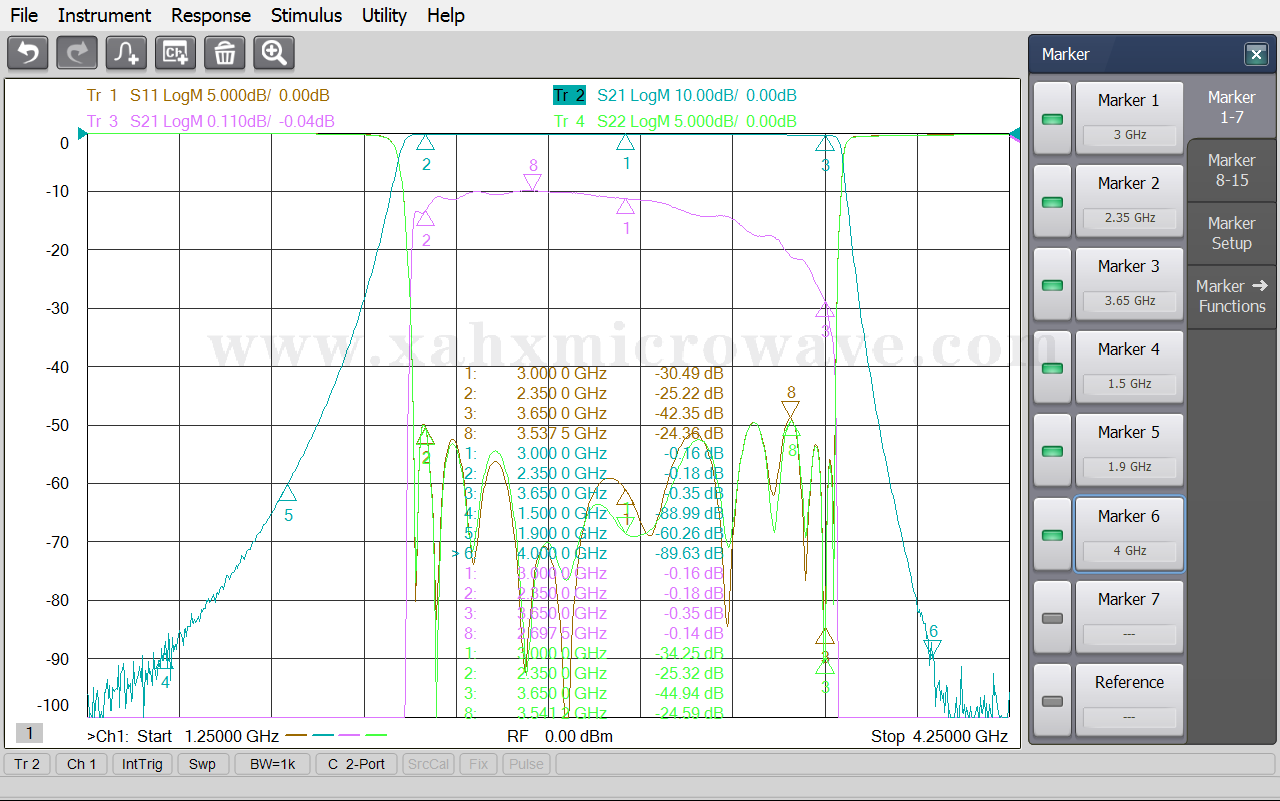 | ● | Pass Band Frequency | 2350 ~ 3650MHz | |