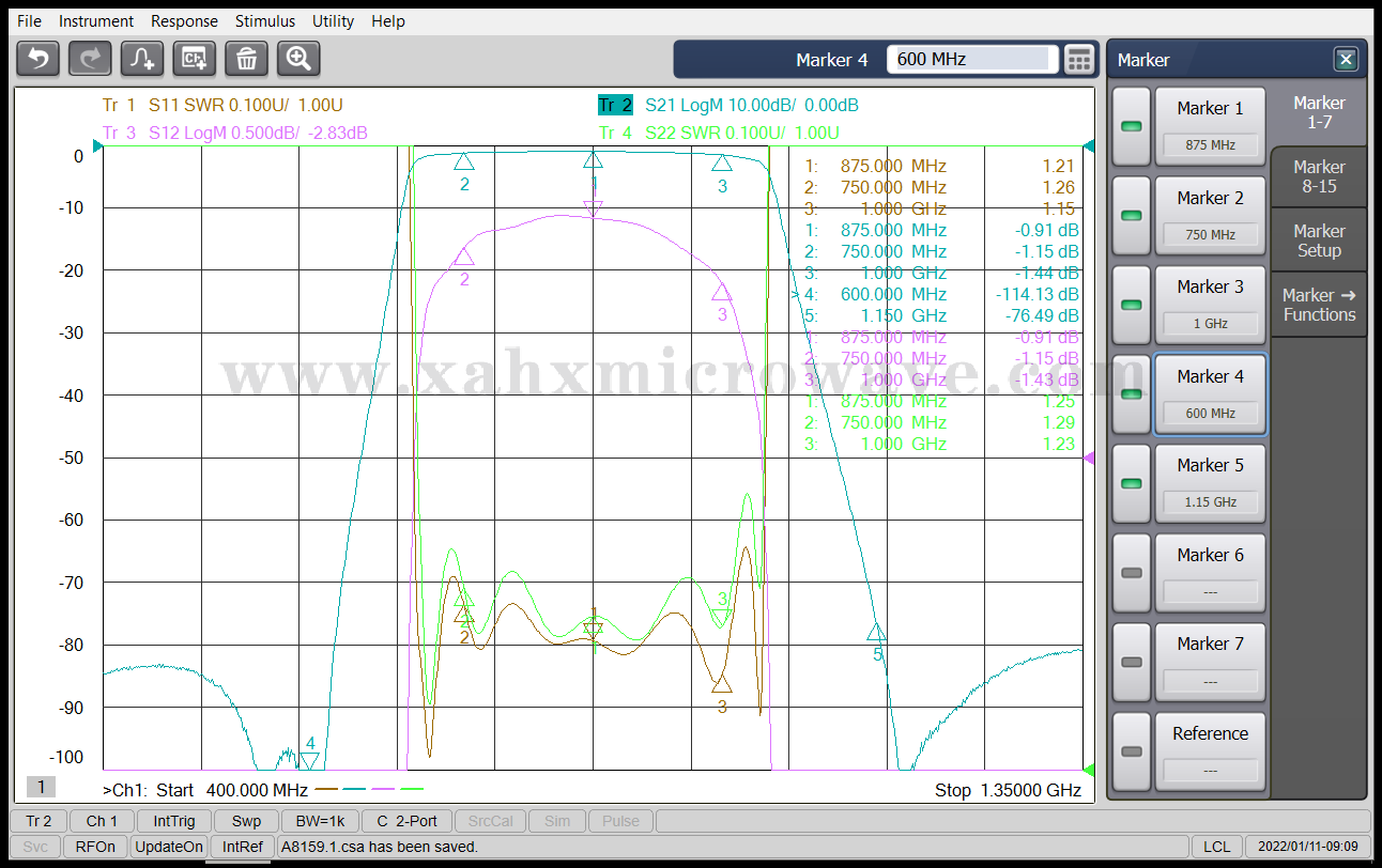 ● | Stop Band Attenuation | ≥70dB @ DC ~ 600MHz | ≥70dB @ 1150 ~ 2000MHz |