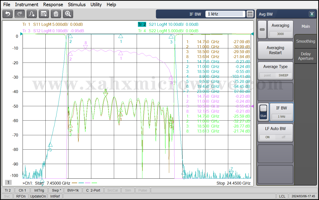 | ● | Stop Band Rejection | ≥80dB @ DC ~ 8900MHz | ≥80dB @ 19450 ~ 23000MHz |