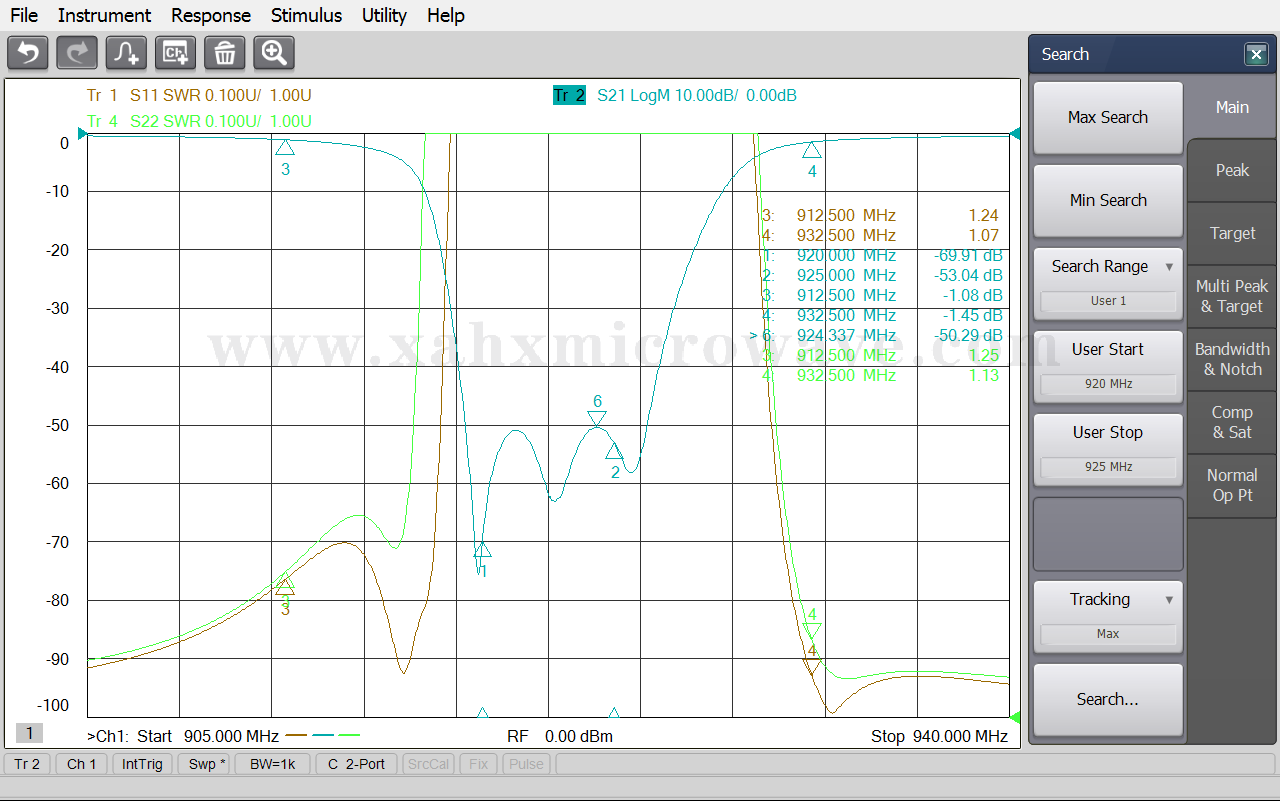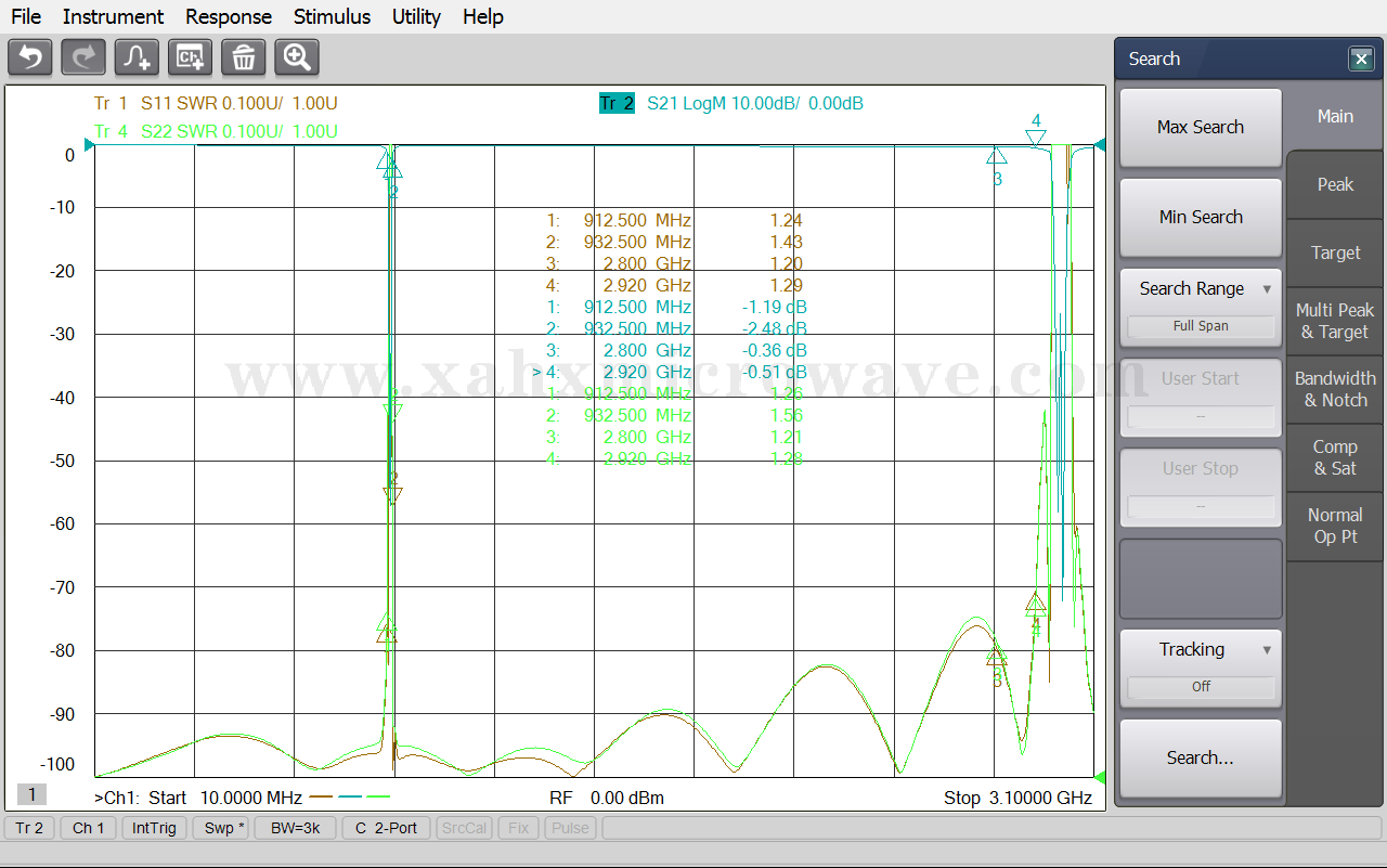 | ● | Pass Band Frequency | DC ~ 912.5MHz , 932.5 ~ 2800MHz |