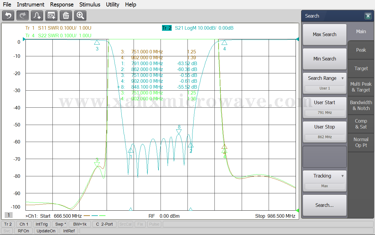 | ● | Stop Band Frequency | 791 ~ 862MHz |