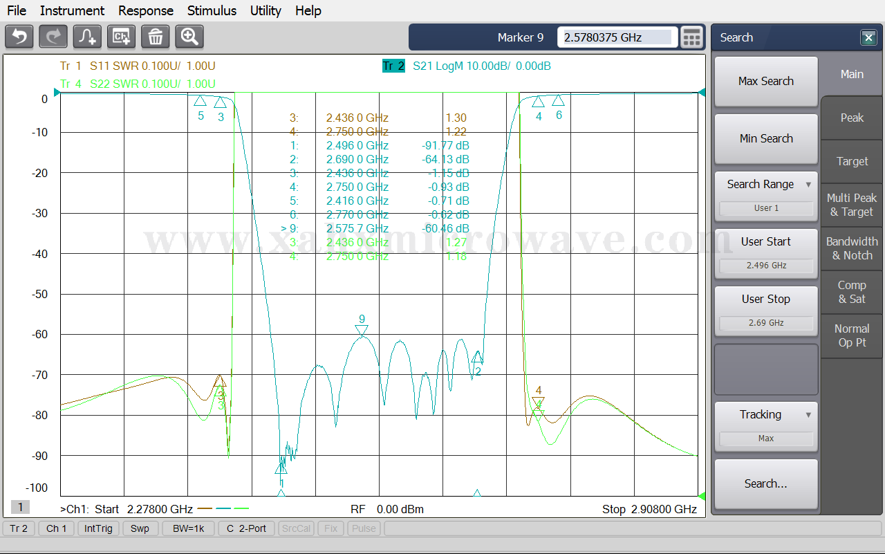 | ● | Stop Band Frequency | 2496 ~ 2690MHz |