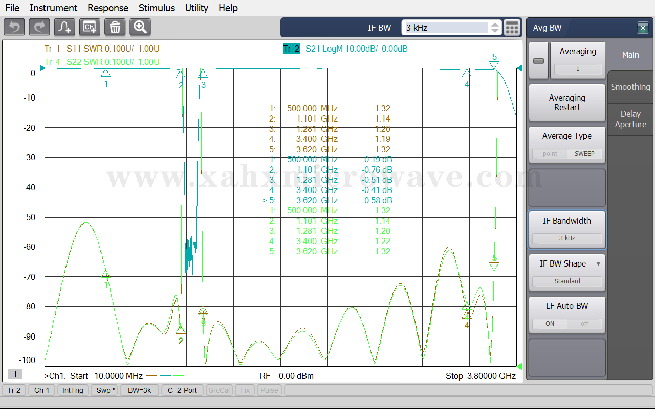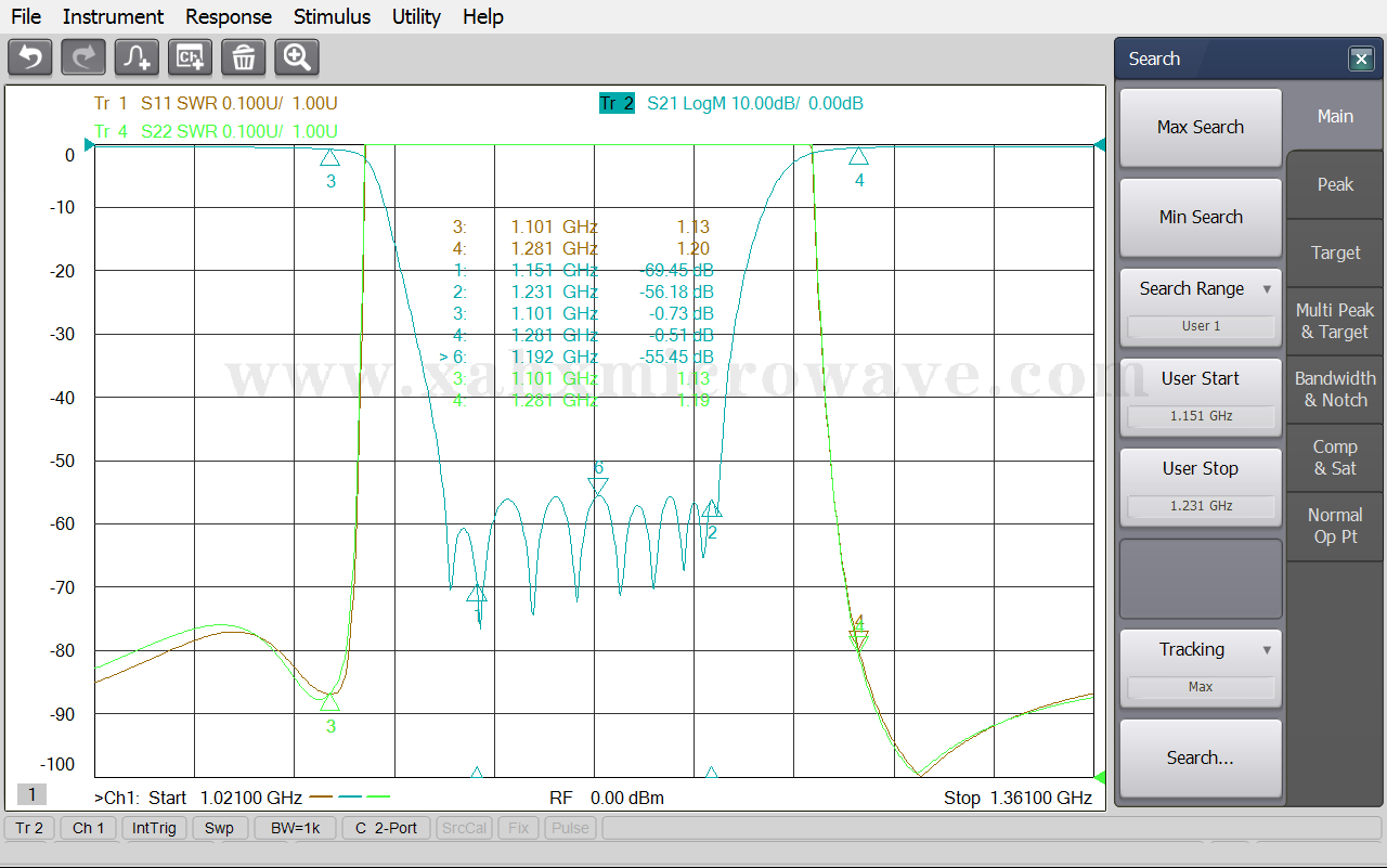 | ● | Pass Band Frequency | DC ~ 1101MHz , 1281 ~ 3400MHz |