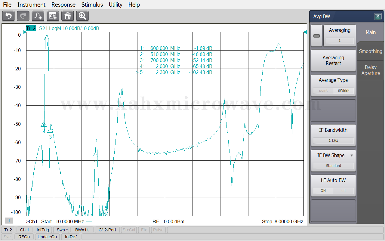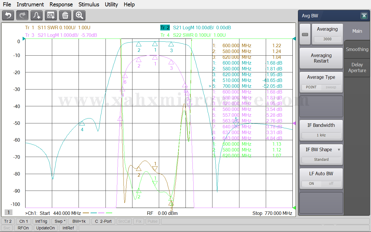 | ● | 3.0dB Bandwidth | 80MHz (560 ~ 640MHz) | |