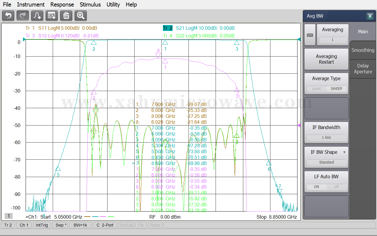 Stop Band Attenuation ≥80dB @ DC ~ 5300MHz ≥63dB @ 8450 ~ 8600MHz