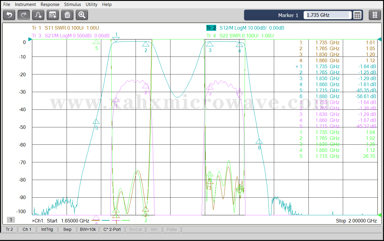 | ● | Pass Band Frequency | 1735 ~ 1765MHz | 1830 ~ 1860MHz |