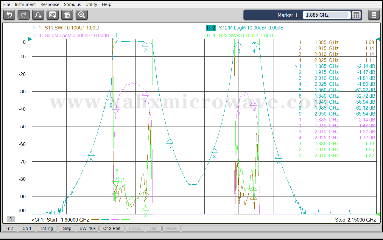 | ● | Pass Band Frequency | 1885 ~ 1915MHz | 2010 ~ 2025MHz |
