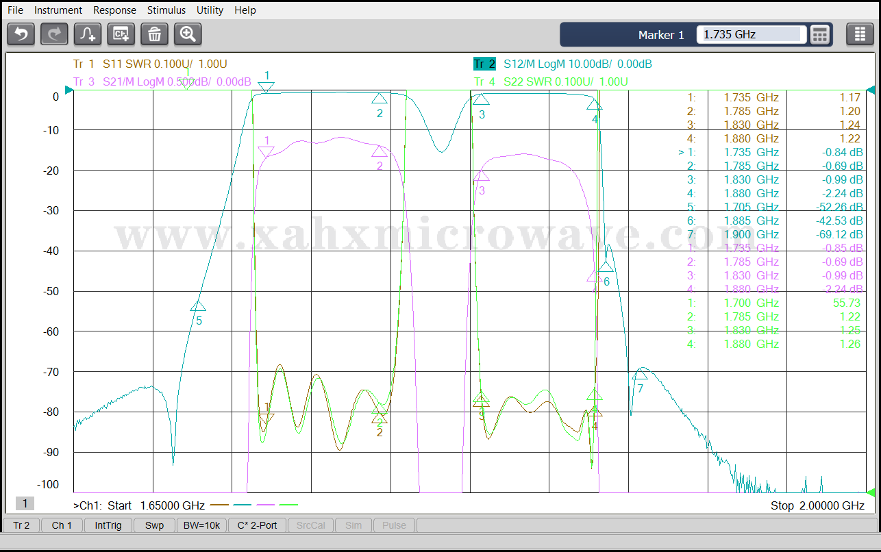 | ● | Pass Band Frequency | 1735 ~ 1785MHz | 1830 ~ 1880MHz |